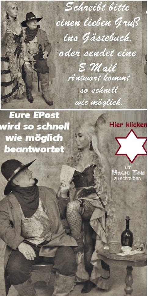 Das Bildmotiv war übriges Tom´s erste Autogrammkarte für Pullman City Harz und wurde kurz vor Beginn der Buffalo Bill Wild West Show von Jutta Bischoff (der Frau von Teddy) aufgenommen. Rocky (der Vogel) wurde übrigens von James Dee gehalten, der in der Kutsche saß. |
